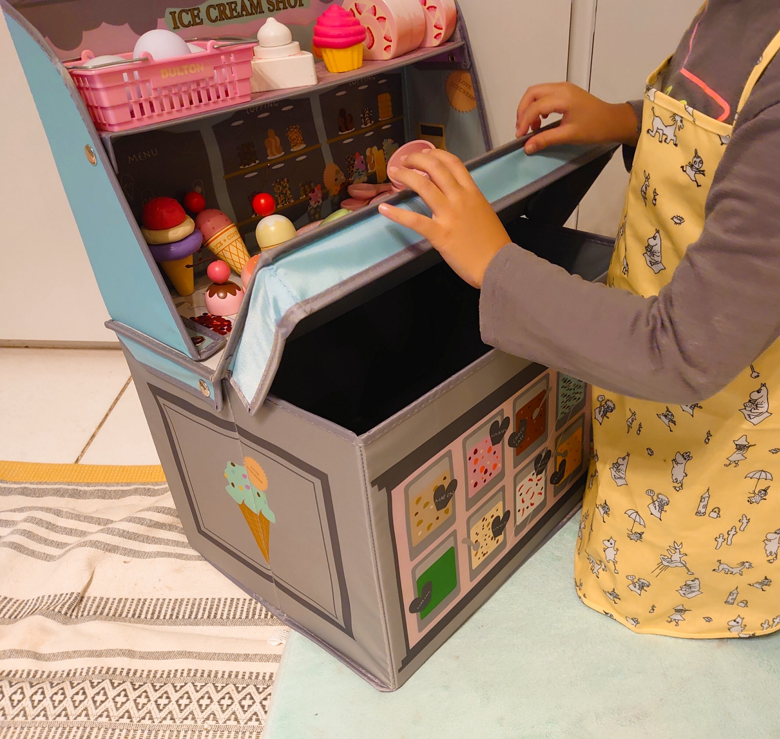 おみせ屋さんごっこで楽しんだあとは、BOXの中に簡単お片づけ☆